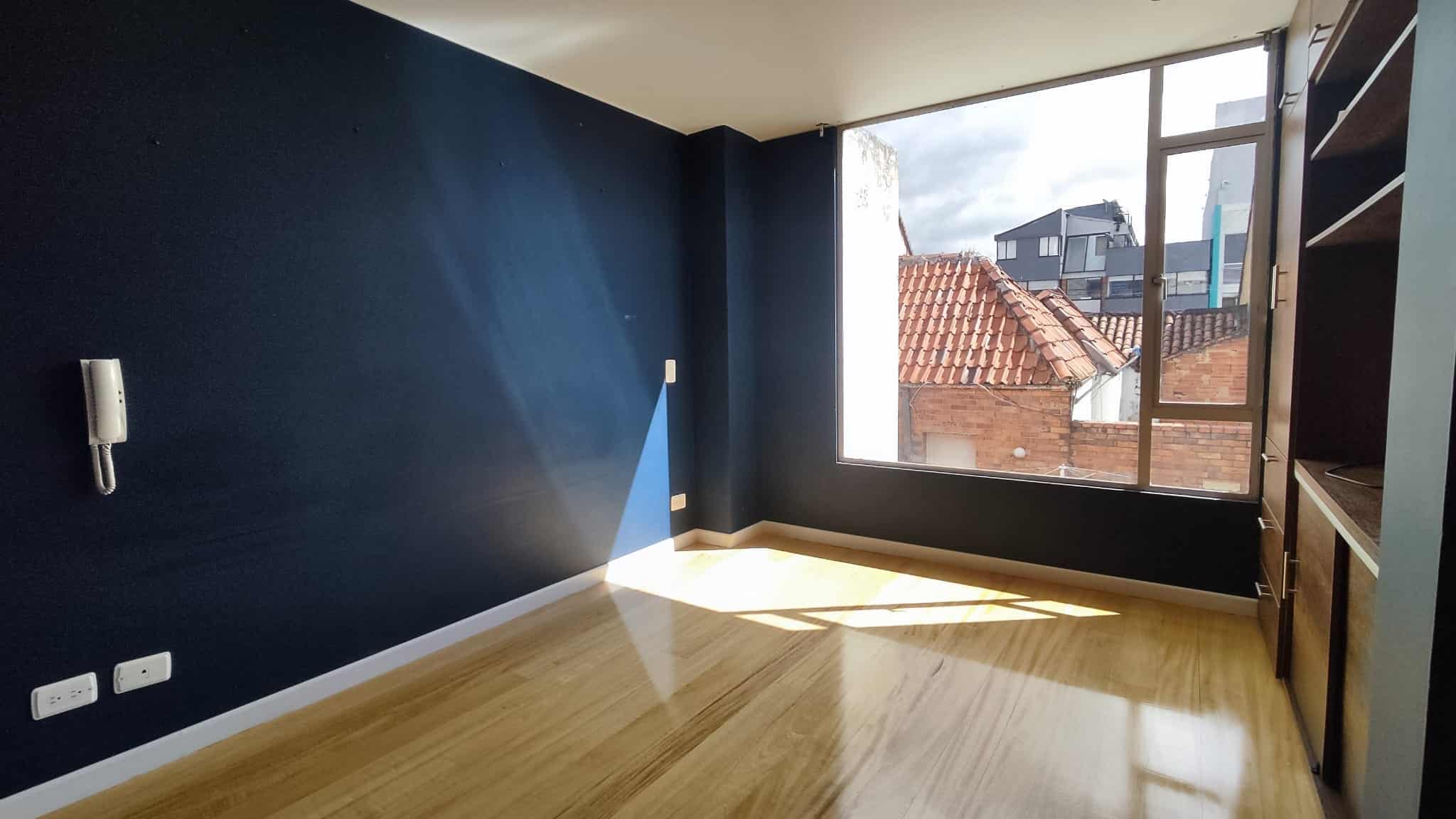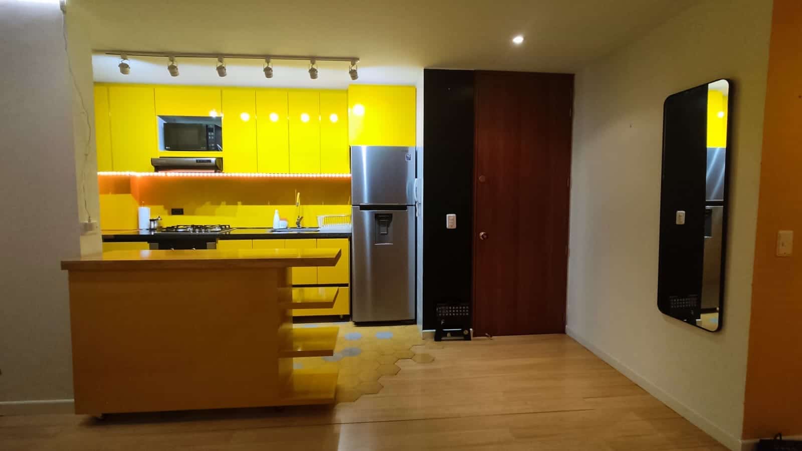 Interior, ubicado en un tercer piso con ascensor, 42 metros cuadrados recién remodelado. Edificio de 11 años de construcción. La dirección es Calle 55 Bis # 16 – 25.